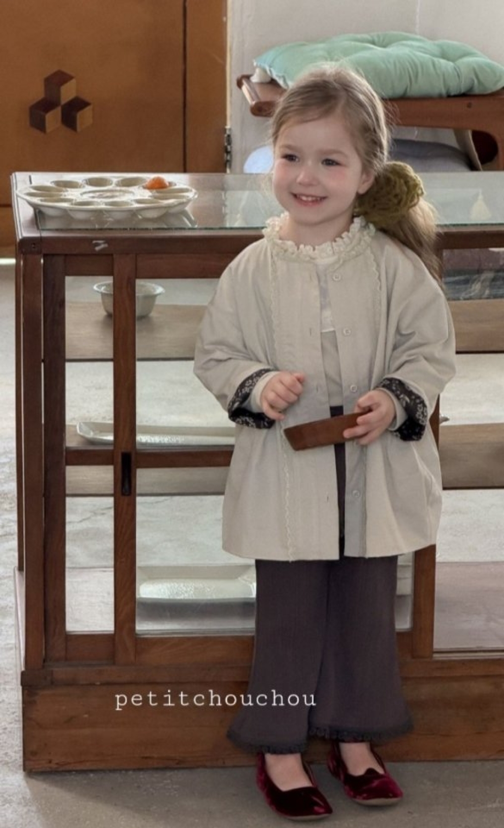 PETIT CHOUCHOU秋 韓國童裝 質感童裝 女孩童裝 風衣 蝴蝶結上衣 蝴蝶結短褲 秋裝 長袖 外套