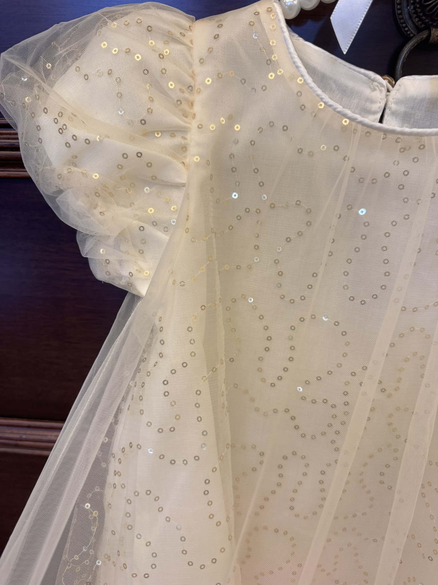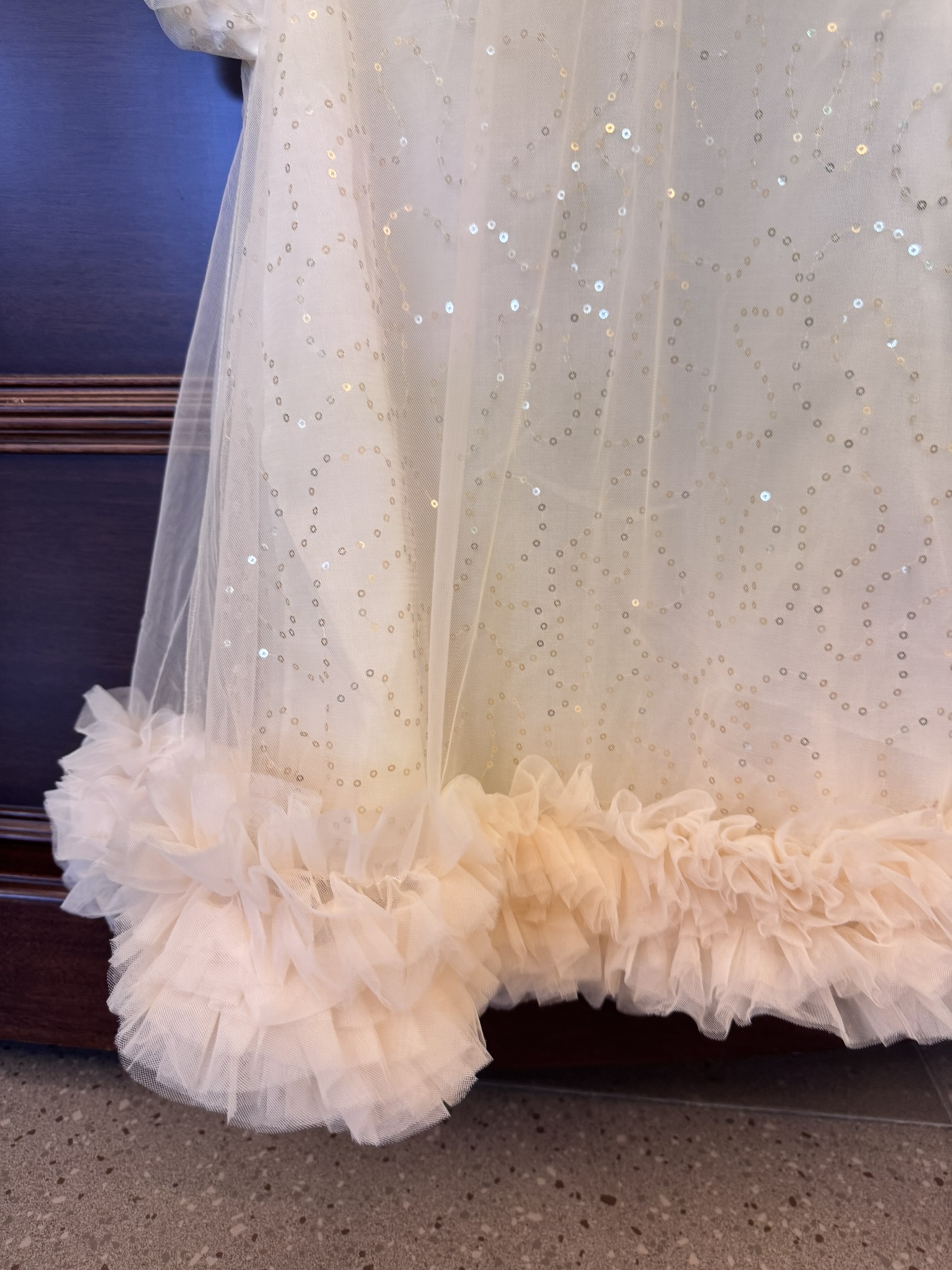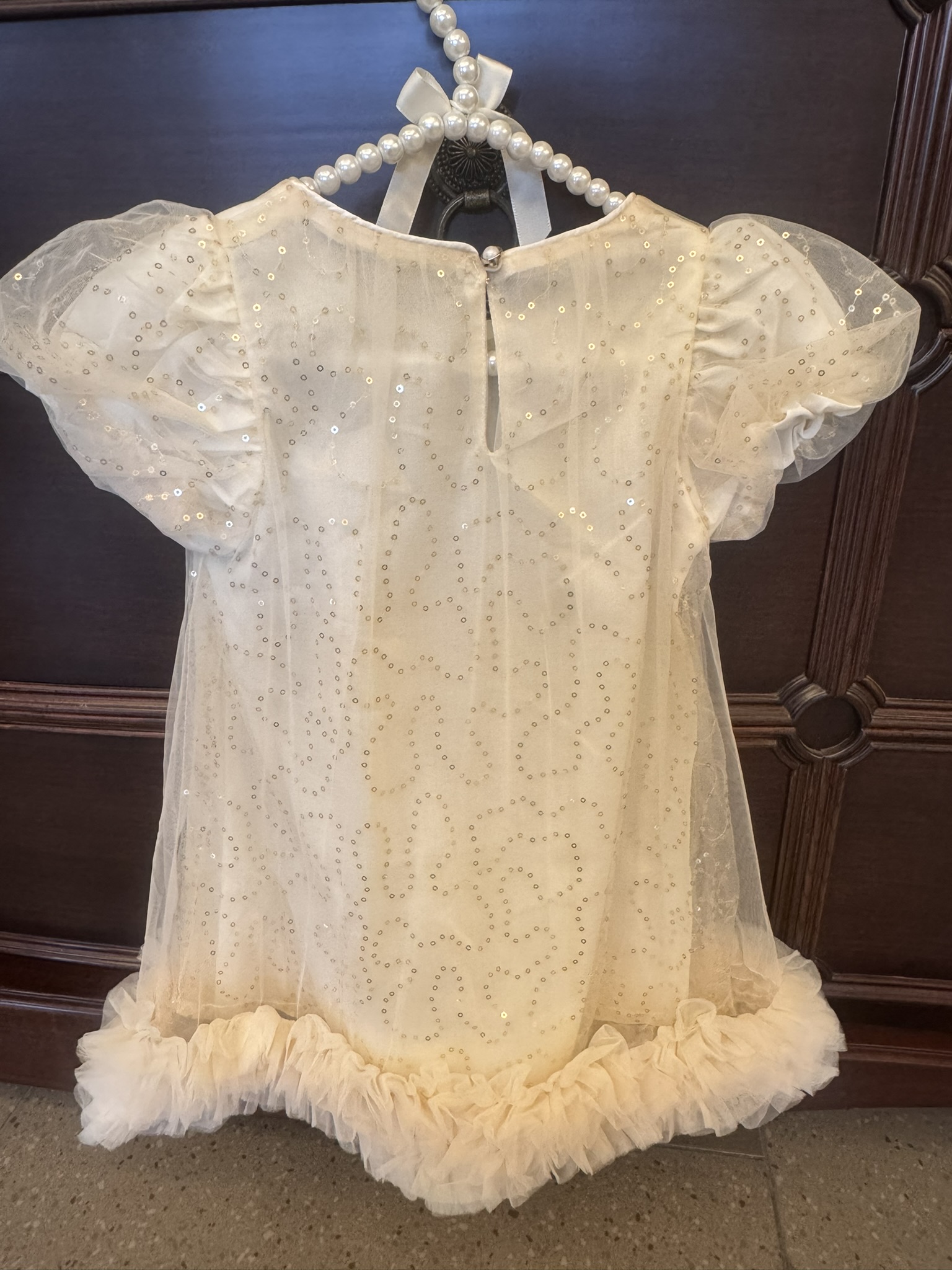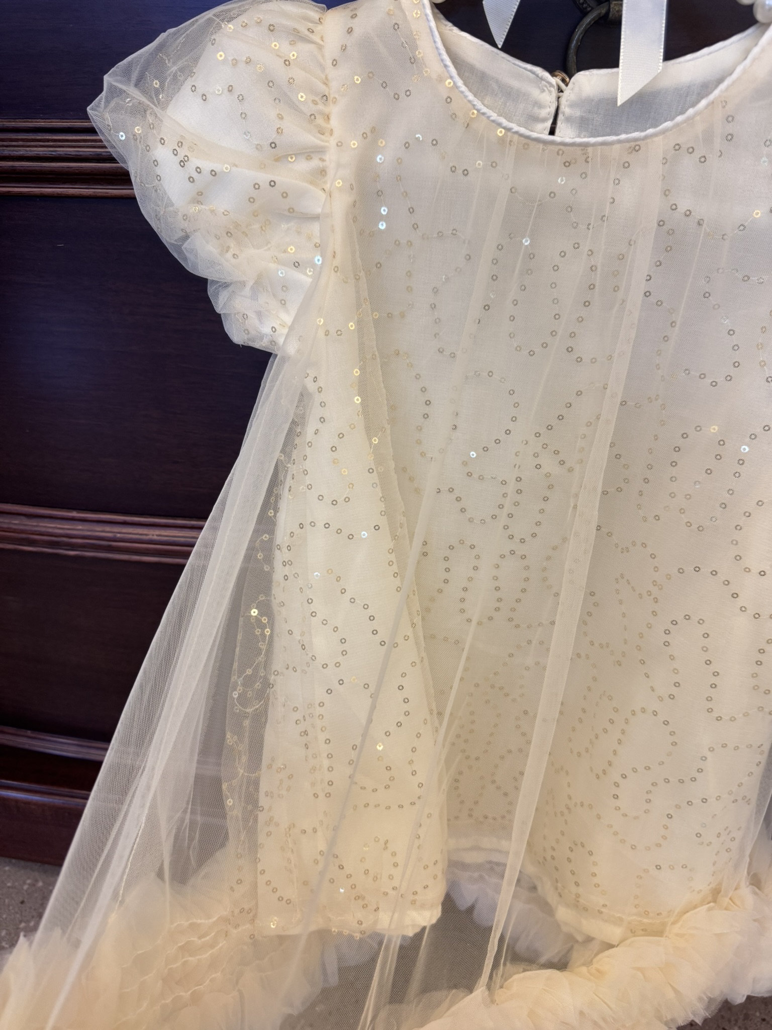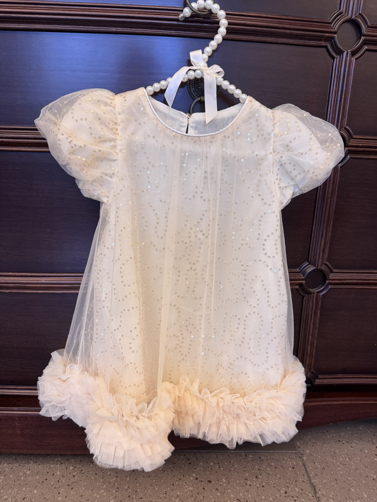 🌈現貨 (M/L/XL) 夢幻女童紗裙洋裝 杏色閃亮洋裝 生日洋裝