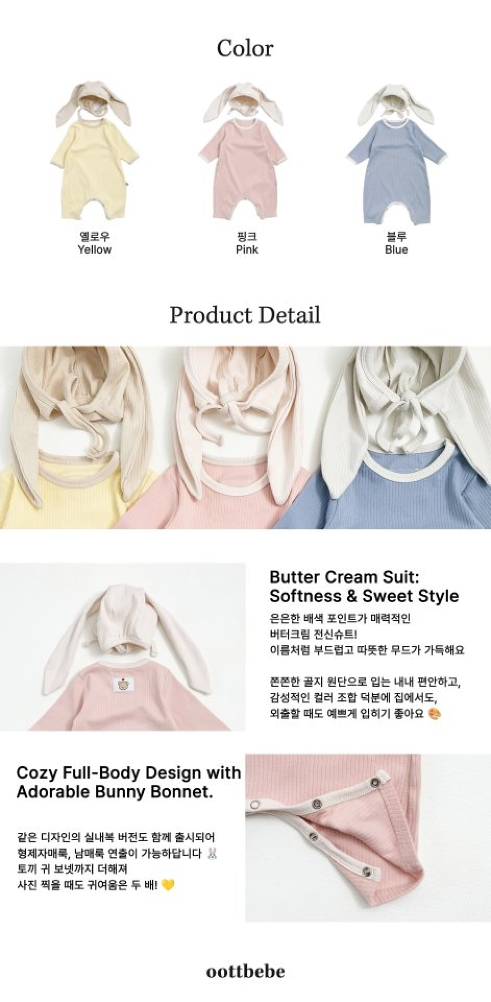 預 | 正韓 oott bebe 秋 | 0~12m | 連身衣套裝 (帽子+連身衣)