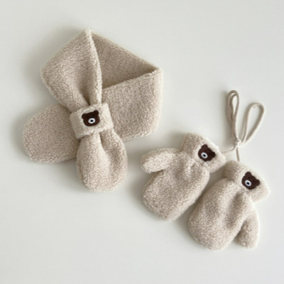 🌈現貨(淺褐)❄️【配件】Miso 熊熊手套圍巾組❄️